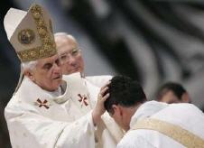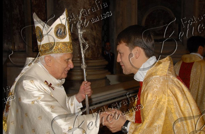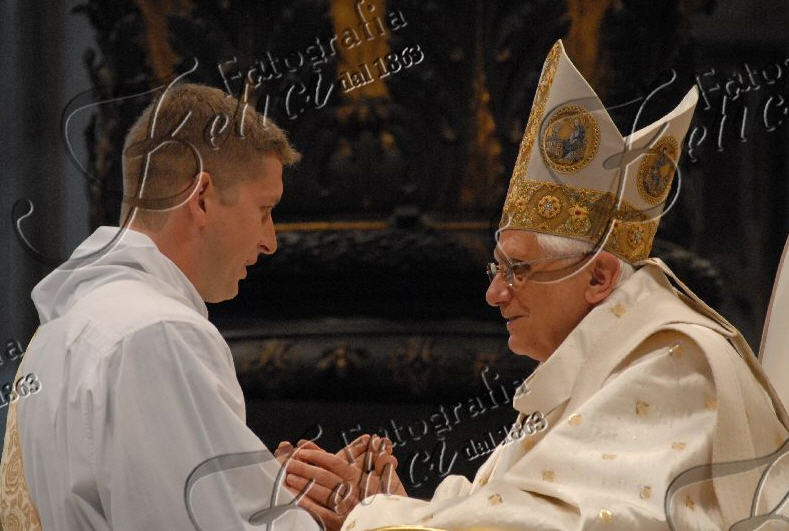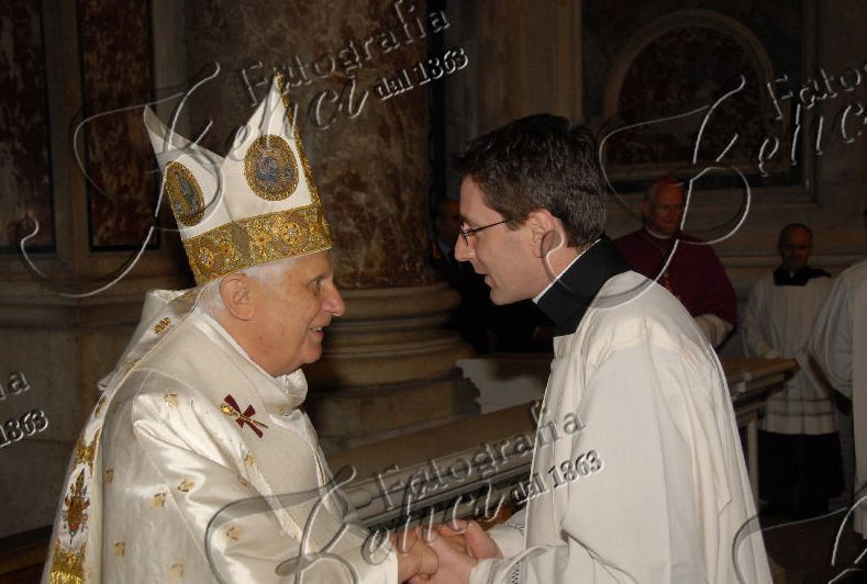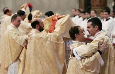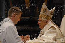 Le Pape a ordonné ce dimanche 22 prêtres du diocèse de Rome, en la Basilique Saint-Pierre . Parmi eux, le fils du phototographe officiel du Vatican, Arturo Mari: Juan Carlos Mari a été ordonné comme membre des "Légionnaires du Christ". ------------------------ Onze des nouveaux prêtres proviennent du grand séminaire de Rome, huit du collège Redemptoris Mater, trois du séminaire du Divin Amour, du collège Capranica et de la Congrégation des Légionnaires du Christ.