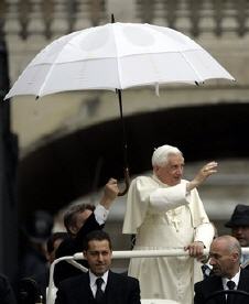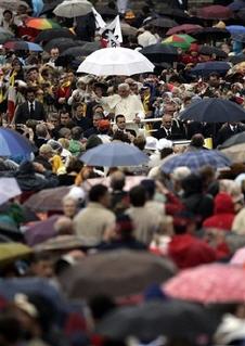 Parmi les dépêches d'agence en italien, je relève une anecdote que je trouve amusante: ------------------------ Dal Papa anche un accenno alla pioggia in piazza San Pietro: 'si parla molto della siccita', prendiamola come una benedizione'. (Le Pape fait une allusion à la pluie Place Saint-Pierre: 'on parle beaucoup de sécheresse, prenons-la comme une bénédiction') ----------------------