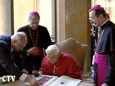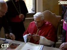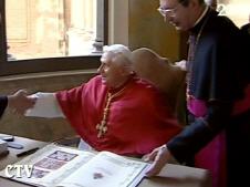 "En accomplissant votre travail avec dévouement...vous assurez la vie quotidienne de l'Etat et vous aidez le Pape à accomplir le ministère que le Seigneur lui a confié au service de l'Eglise et du monde. Par conséquent, vous pouvez être appelés collaborateurs du Pape". Source: VIS