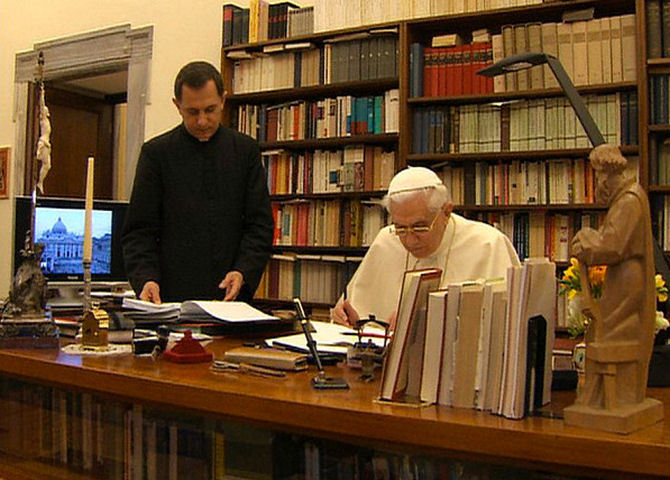 Il s'agit de captures d'écran réalisées à partir du téléfilm de Giuseppe de Carli diffusé sur RAI 1 à l'occasion du quatre-vingtième anniversaire du Saint-Père. J'ai trouvé ces captures sur le site The Pope Benedict XVI Forum.