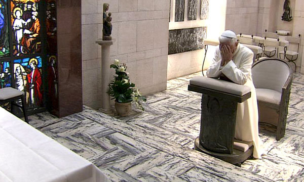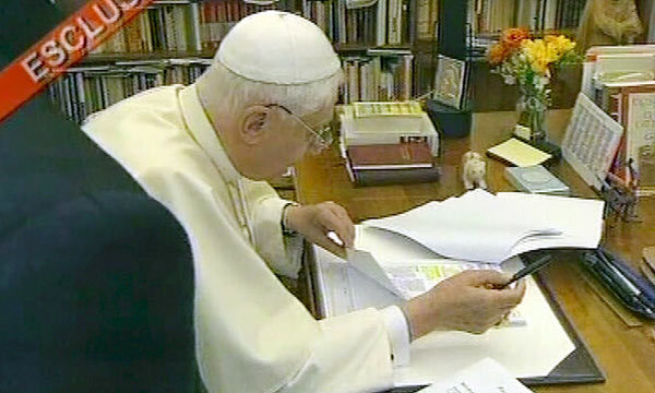 A ceux qui éprouveraient quelque réticence à l'idée d'observer l'expression de Benoît XVI dans des moments aussi intimes que sa prière dans sa chapelle privée, j'objecterais qu'il a lui-même accepté d'être filmé. Et que cette "indiscrétion" n'enlève rien au respect profond que nous ... avons pour le Vicaire de Christ, bien au contraire. ("La splendide humanité de Benoît" ) ------------------------