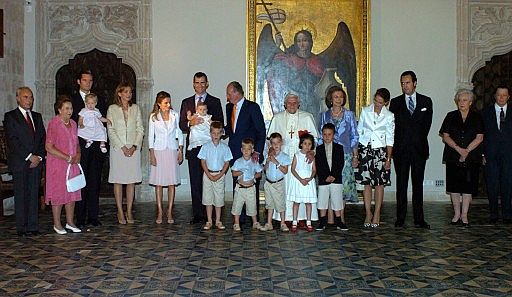 Une lectrice canadienne, Sheelagh, me remet en mémoire les photos (peu) protocolaires mais si craquantes de la rencontre avec la famille royale, et ces jolis instants de familiarité joyeuse avec les enfants. On observera que l'un des petits princes tient la main du Saint-Père -qui le laisse gentiment jouer avec "l'anneau du pécheur"...