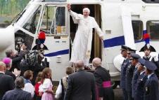 Sur la video de la RAI ( Arrivée à Lorenzago di Cadore ), on entend --mais pas très clairement-- l'échange entre le pape et les journalistes qui l'ont interrogé à sa descente d'hélicoptère.