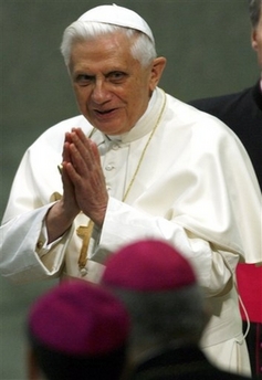 Curieusement, c'est Internet qui m'avait fait toucher du doigt ce "mystère": les pages "Papacy and the Vatican on Yahoo", où je puise beaucoup des photos illustrant mes propres pages, ont été pendant plusieurs jours, littéralement inondées (polluées?) de photos montrant -prétendument- les réactions des italiens devant le refus de l'Eglise Catholique d'accorder des obsèques religieuses, puis les obsèques elle-mêmes. Or, il semble que Welby n'était pas croyant. Que faisaient ces photos dans ces pages, dont le titre devrait se passer de commentaires, recouvrant les belles images du Saint-Père préparant la Nativité? (voir ci-contre; les photos des manifestations ne sont plus disponibles sur le site à l'instant où j'écris ces lignes)