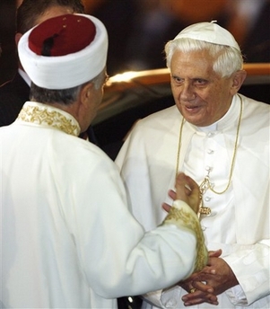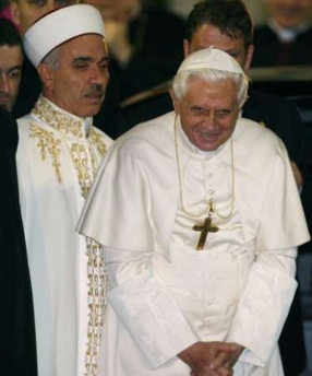 Et pourtant, les milieux catholiques intégristes (je n'aimais pas ce mot, mais à présent, comment les appeler autrement?) que j'effleure via Internet, bruissent avec insistance de la rumeur selon laquelle IL aurait prié dans la mosquée tourné vers la Mecque. Les gens qui se complaisent à colporter cette nouvelle n'ont RIEN vu, rien entendu. Ils se contentent d'abboyer. Les bras me tombent devant une telle insupportable mauvaise foi. Ces gens, qui se réclament du Christ, se comportent pire que les pires zélateurs des religions auxquelles ils prétendent opposer leurs propres lumières. La situation était humaine, faut-il leur rappeler que le Pape est aussi un homme? Il a pris des risques, et mêmes de terribles risques physiques. Ce n'est pas parce qu'il sera rentré demain sain et sauf à Rome que ces risques seront éteints. Tout s'est passé très simplement et naturellement. Il était le visiteur, devait-il se comporter grossièrement. Devait-il leur tourner le dos, pour faire sa propre prière??? Garder ses chaussures??? Qui, parmi ceux qui se permettent de le critiquer, oserait rentrer en short dans une mosquée (il ne le pourrait d'ailleurs pas), ou accepterait qu'on rentre en maillot de bains dans une Eglise. Il n'y a aucune contadiction dans l'attitude du Saint-Père, c'est sa nature profonde, que de respecter tout ce qui est sacré pour autrui, et c'est selon lui à ce prix seulement que sera évité le choc des civilisations, il a donc évidemment raison. Et le fait d'aller à la rencontre des gens, de discuter avec eux, signifie-t'il qu'on adopte vis-à-vis d'eux une attitude de soumission? Aujourd'hui plus que jamais, il me semble que l'attitude de notre Pasteur aimé sépare le bon grain de l'ivraie, au moins pour moi.
