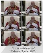 Ces lignes simples et belles, écrites par quelqu'un qui est très proche des préoccupations quotidiennes des gens, sont extraites du discours traditionnel prononcé le 22 décembre devant la Curie Romaine. Benoît XVI évoque sa rencontre avec les familles lors de son voyage à Valence, pour la clôture du Congrès Mondial des Familles, en juillet dernier. Il nous renvoie à la veillée du samedi 8 juillet à la cité des sciences de Valence, qui reste dans mon souvenir comme un grand moment de fête (en particulier, l'instant où l'acteur italien Lino Banfi l'a appelé "nonno del mondo", photos ci-contre).