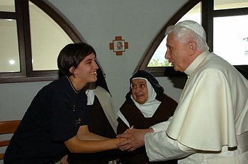 La visite de Benoît XVI a procuré un grand réconfort aux religieuses. "Il nous a répété que la vie contemplative est importante. Votre vie, a-t'il dit, riche de charité, ouvre le Ciel à l'humanité qui en a bien besoin, car aujourd'hui, dans le monde, il sembble que Dieu soit absent. Et là où Dieu n'est pas, il y a la violence, le terrorisme. Le Pape nous a vraiment dit "de prier également pour les terroristes parce qu'ils ignorent qu'ils ne font pas seulement du mal aux autres, mais aussi à eux-mêmes"