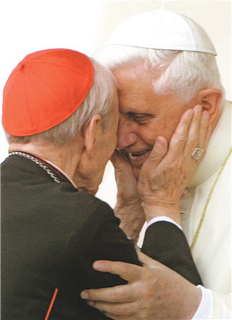 C'est en tout cas ce que constate avec lucidité le cardinal archevêque émérite de Ravenne Ersiglio Tonini. Qui conclut son analyse par ces très belles paroles sur son ami Benoît XVI: "C'est un homme incroyable de naturel, d'une exceptionnelle sérénité et gentillesse. Vous pouvez le voir à la manière dont il regarde les gens. Il montre tout dans ses yeux, et en le regardant, on se sent enveloppé de gentillesse. Et pourtant, il ne fait pas étalage de sa richesse intérieure, qu'il garde au fond de lui". (source: Papa Ratzinger Forum) ------------------------- Qu'on en juge, sur ces images: (voir aussi ici: Le sourire du Pape )
