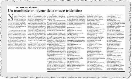 Un manifeste en faveur de la messe tridentine Le Figaro Publié le 16 décembre 2006