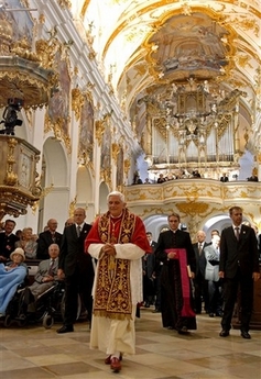 Le mercredi 13 septembre, c'était en principe une journée privée. Mais avec sa disponibilité coutumière, et surtout son sens du devoir, le Saint-Père a accepté d'honorer un engagement qui n'était pas prévu initialement, l'inauguration du nouvel orgue de la "Alte Kapelle" qui portera son nom. Après avoir écouté les premières notes délivrés par le grandiose instrument, il a prononcé quelques belles paroles, bien dans son style, avec des métaphores hardies et limpides, simplement exprimées.