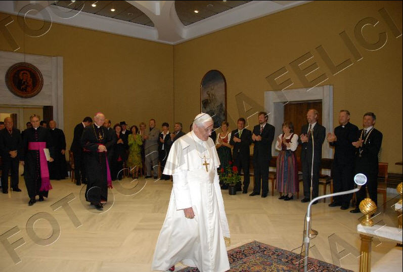 Une délégation de presque 40 résidants de la petite ville bavaroise à l'est de Munich, où le pontife a passé ses années d'école primaire était conviée ce matin. Le Pape Benoît a déclaré devant cette délégation, dont le maire et certains de ses anciens camarades de classe étaient présents ainsi que des amis du pape, qu'il était considérablement honoré de recevoir cette distinction toute particulière d'une ville qu'il considère toujours comme sa maison.
