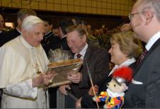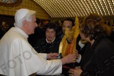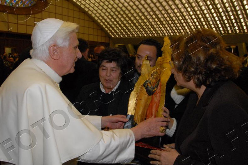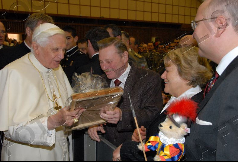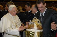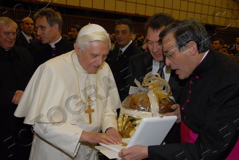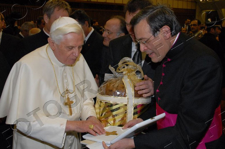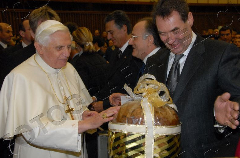 Une délégation de boulangers, menée par le président de la fédération nationale, a offert à Benoît XVI un panettone de 5 kilos, et une précieuse croix pectorale, qui avait été créée par le sulpteur Enrico Manfrini pour Paul VI. Manfrini, disparu en 2003, était le sculpteur préféré de Papa Montini, et ses oeuvres sont également très appréciées par Papa Ratzinger. En lui apportant son cadeau, les boulangers ont remercié le Saint-Père pour sa forte attention aux thèmes de la famille, et du caractère sacré du repos dominical. (ASCA)