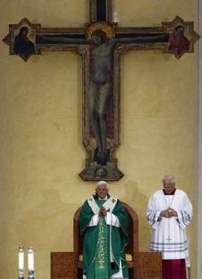 ... "mon souhait, que vous partagez sûrement tous, est que l'Eglise en Italie puisse repartir de ce Congrès comme transportée par la parole du Seigneur ressuscité qui répète à tous et à chacun : soyez dans le monde d'aujourd'hui les témoins de ma passion et de ma résurrection. Dans un monde qui change, l'Evangile ne change pas. La Bonne Nouvelle reste toujours la même : le Christ est mort et il est ressuscité pour notre salut ! En son nom, apportez à tous l'annonce de la conversion et du pardon des péchés, mais soyez les premiers à donner le témoignage d'une vie convertie et pardonnée"
