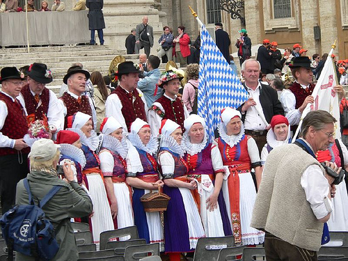 Pour rester dans l'ambiance, nous terminons la matinée à la "Cantina Tirolese", autrefois fréquentée par le Cardinal Ratzinger, et nous y mangeons de bon appétit une choucroute bien peu romaine, délicieuse, mais malheureusement tiède, et une excellente "sacher torte", parmi des groupes de pélerins français.