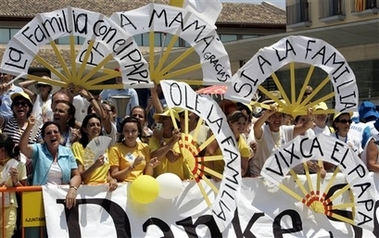 Arrivé le samedi 8 juillet à Valence, accueilli par le couple royal, les autorités locales, et un premier ministre Zapatero très "militant", le Saint-Père s'est rendu à la station de métro Jesùs, et a déposé une gerbe en mémoire de 42 victimes de l'accident de métro survenu cinq jours plus tôt. Le soir, il a assisté à une veillée festive dans le cadre futuriste de la cité des Arts et Sciences de Valence, en présence des infants d'Espagne, et de centaines de milliers de familles venues du monde entier, avant de présider le lendemain, une messe solennelle de conclusion du Congrès, devant le couple royal, et une foule recueillie de plus d'un million de personnes. Durant ces deux jours intenses, le Saint-Père s'est à plusieurs reprises exprimé avec passion pour défendre "le mariage entre un homme et une femme", patrimoine de l'humanité au-delà même du cadre religieux.