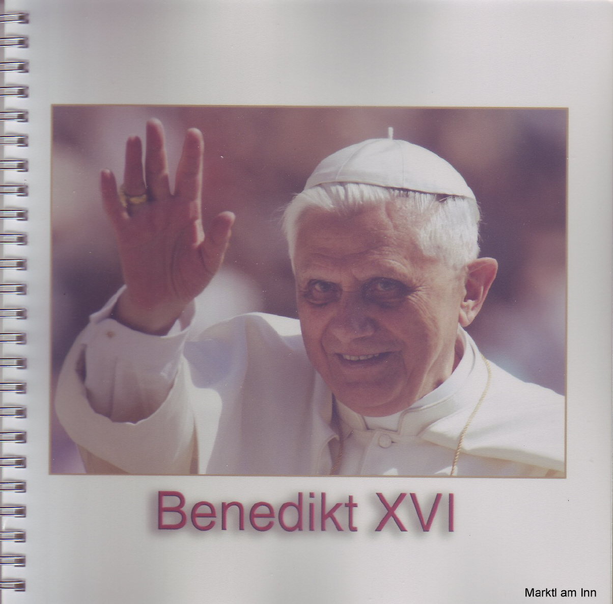 Edité par le syndicat d'initiatives de Marktl, un livret constitué de 25 photos du Saint-Père en très haute qualité. On peut en admirer un échantillon ci-contre.