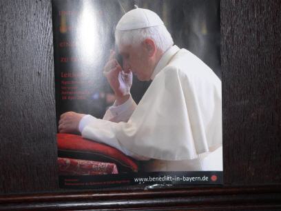 Mon petit reportage en images sert de toile de fond, ou si l'on veut de prétexte, à l'histoire du Pape Bavarois, telle que la raconte Christian Feldmann dans son livre 'Benedikt XVI, der bayerische Papst' véritable mine de surprises et de révélations dont mon mari, vigoureusement sollicité, a bien voulu traduire pour moi la belle préface et plusieurs passages relatifs à Pentling. Au retour de ce voyage, j'ai l'impression d'avoir pénétré -mais sans violence, sans indiscrétion, car il n'était pas présent physiquement- dans son intimité. En un mot, de le connaître comme quelqu'un de très proche. Et le connaître, c'est l'aimer, je trouve.