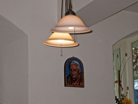 Ci-contre: Portrait du Pape, dans une gasthaus.