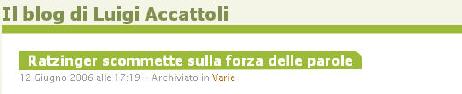 Conclusion du journaliste: Benoît "force" le langage. Le fait de ne pas être italien lui donne une liberté supplémentaire, au moins en ce qui concerne la traduction de ses textes dans notre langue. ... La force des mots convient à Ratzinger, comme la force des gestes profitait à Wojtyla.